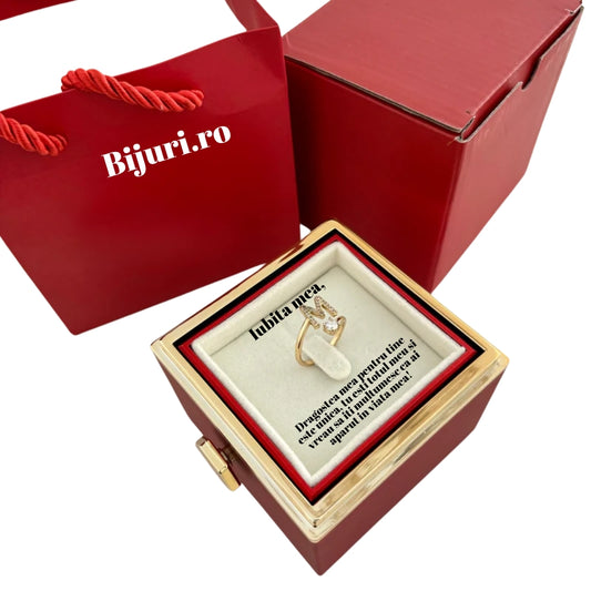 Meglepetés Gyűrű Forgó Doboz - Gyűrű Kezdőbetűvel és Örök Rózsával Ékszer + Gratuláló Üzenet